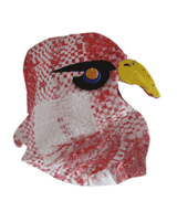 | Plaid Peregrine Falcon, (wings not shown) 2010; 19" x 17", woven discarded plastic, twist ties, marker, tape dispenser, wire, plastic lids and bottle tops | |||||||||||||||||||||