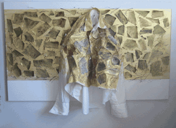 ; 2009; 40" x 30" x 6"; canvas, acrylic, paint, ink, thread, glue, discarded shirt