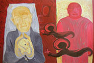 | Two Men, 2003, 20" x 30" acrylic and paper on acid free illustration board | Funeral, 2000, 20" x 30" acrylic and paper on acid free illustration board | |||||||||||||||||