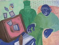 | Obverse Living Room II (with TV), 2008; 30" x 40" acrylic and paper on acid free illustration board | ||||||||||||||||||